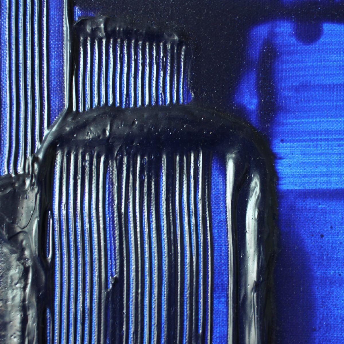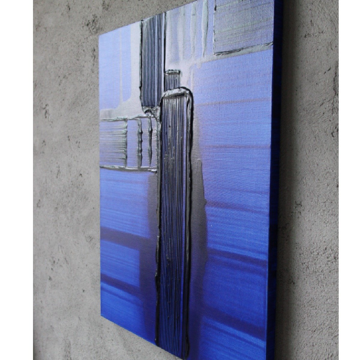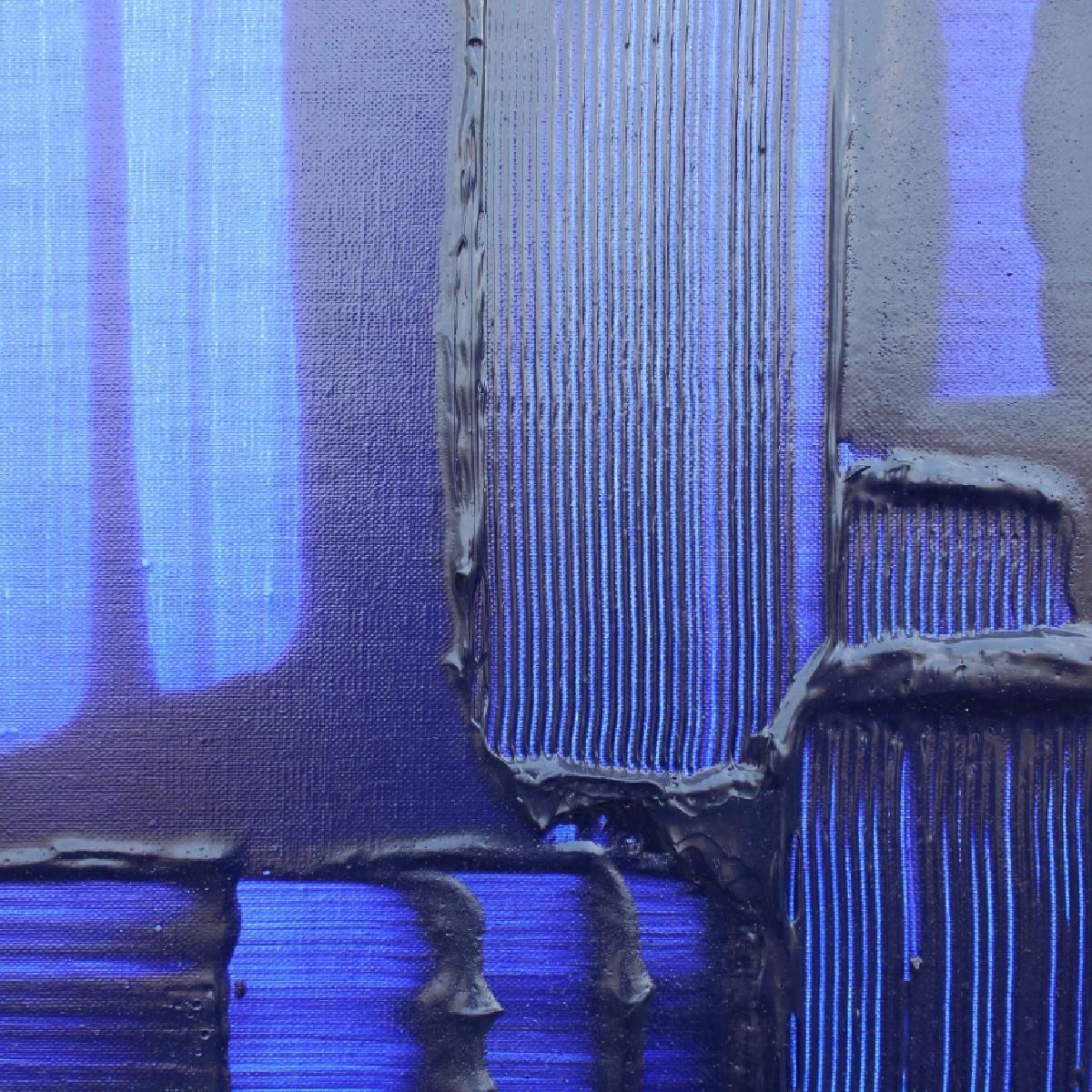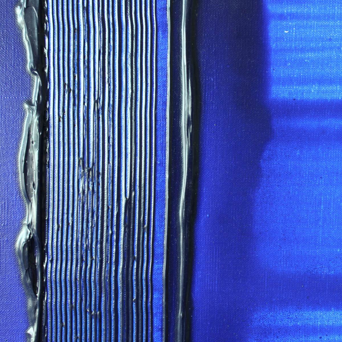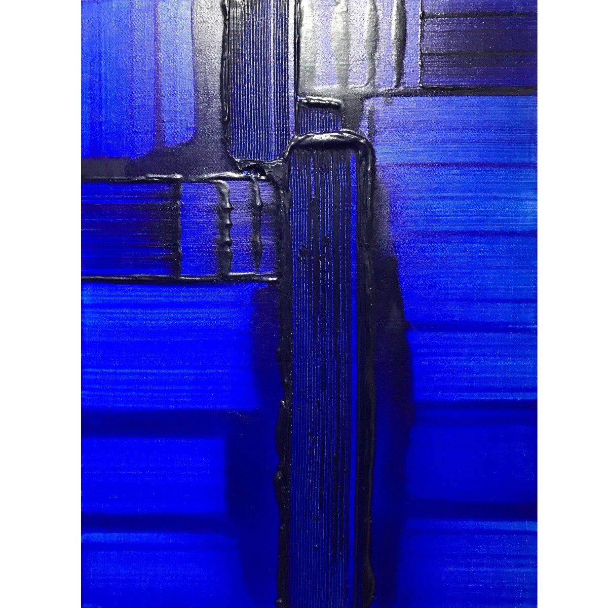 - 色彩是有生命的,她时刻在向人们表达情感,她的多情感染了我,我企图用颜料与她交流和观者对话。《蓝话》系列的主色调蓝色,她是海洋、是天空、是我心中的那片蓝、又或者她是我梦境里的女神。在我蓝色的梦境中时有洪流倾泄而入与之追逐,时有闪电熠熠与之争辉,时有骏马长啸而来,尽情飞奔化成一道道彩光与她交织在一起……